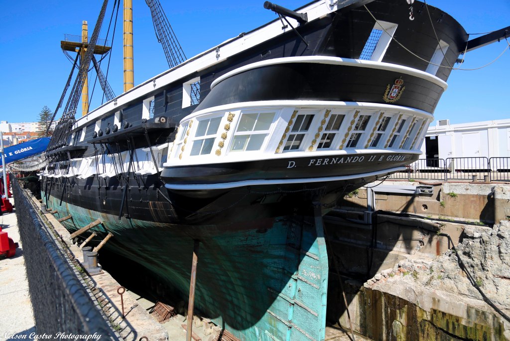 A histórica fragata, em sua privativa doca seca, continua sendo atração a mostrar aos visitantes que a não conheciam e muitíssimo surpresos e encantados ficam durante a visita. Neste domingo forcei minhas combalidas pernas a escalar a prancha de portaló e as íngremes escadas internas, para acompanhar e guiar familiares de Coimbra. Os canhões e baleeiras estão no cais, removidos para trabalhos de manutenção, a mastreação alta assim como todo o poleame foram temporariamente removidos. Do mastro da mezena, só as mesas das enxárcias e um vazio que incomoda quem conhece o navio em sua íntegra. A majestade remanesce, todavia…