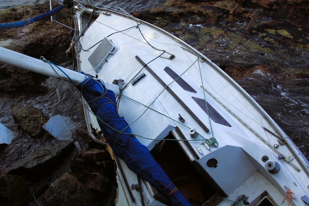 Nossos passos seguem os passos dos que nos precedem na trilha do exercício. Meus olhos vão geralmente pregados nas pedrinhas basálticas, umas brancas outras pretas outras ornadas por excrementos caninos. Os pensamentos voam, hora à velocidade bem acima da da luz, para logo em seguida estagnarem sobre o nada; “O que foi que eu disse?” Pergunta-me a minha companheirinha. Pergunta surpreendente e assaz embaraçosa, porque é claro que, se ela falou, eu não terei dado a mínima atenção. As passadas azedam já que eu nunca cheguei a aprender como desculpar-me. A não ser que algo não usual encontremos, como um veleiro de bom tamanho carregado pelo swell e atirado às pontiagudas rochas. Condoída ficou minha alma do mar, pelo destroço, ainda que agradecida, afinal…